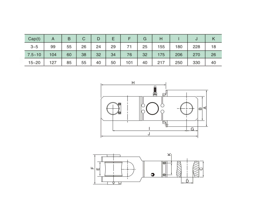 Special load cell for crane scale, Elastomer use integral alloy steel , high precision, strong overload protection capability and anti-deflective loading, with special ring and hook, easy to install.